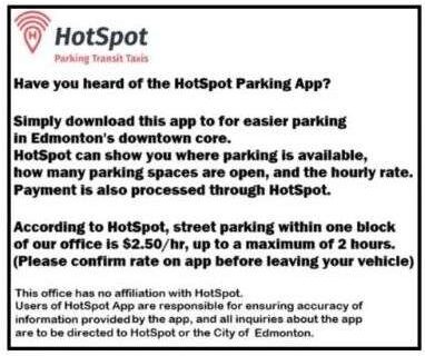 Download the HotSpot App for ease of payment. As of Jan 1, 2026, parking fee is $2.50/hr unless otherwise stated.